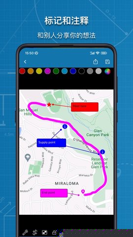 1. 动态测量体系:在标注过程中自动计算长度、面积、周长等几何参数,并实时同步显示数值变化与比例关系,用户无需手动计算,极大提升了数据获取效率。